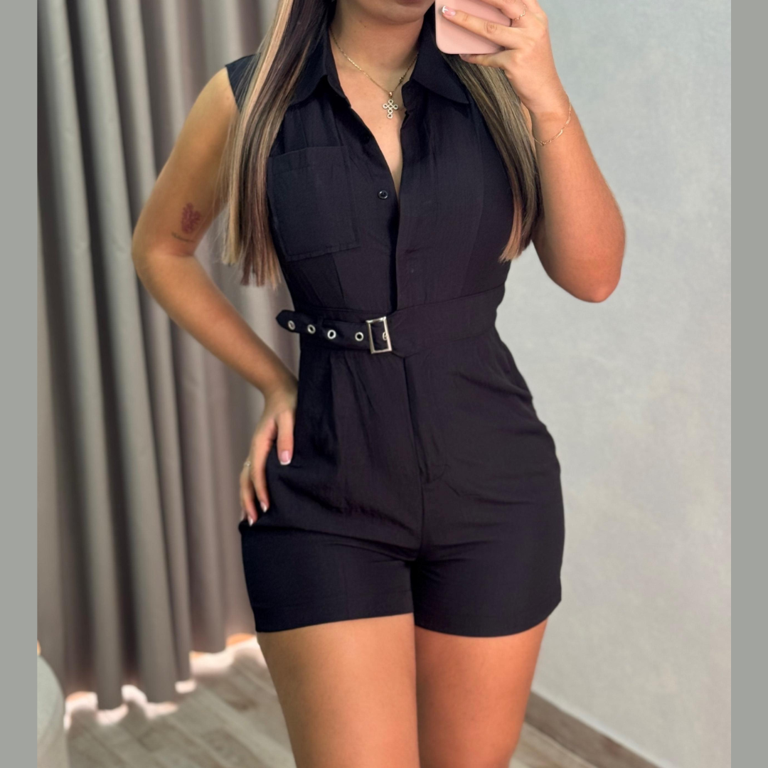 Enterizo corto con cinturón y bolsillo frontal