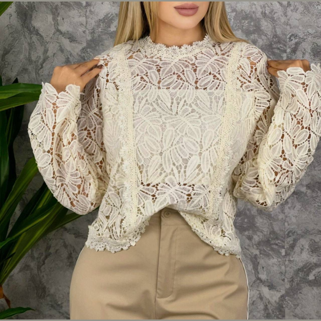 Blusa en crochet floral manga larga con cuello alto