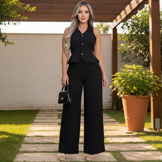 Conjunto Femenino Elegante con Chaleco y Pantalón Amplio