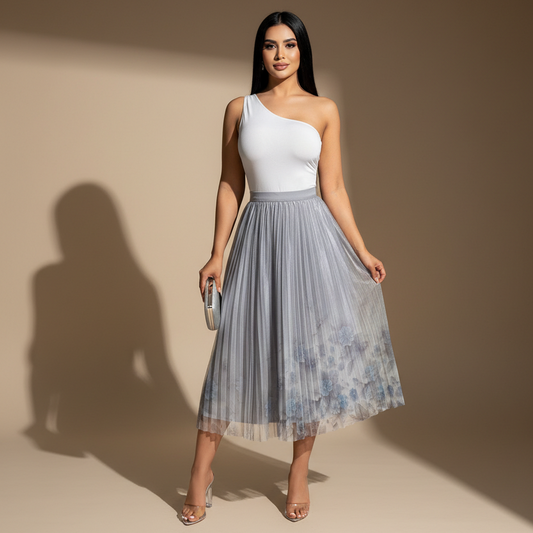 Falda MIDI VALERIA Tul Plisado Floral
