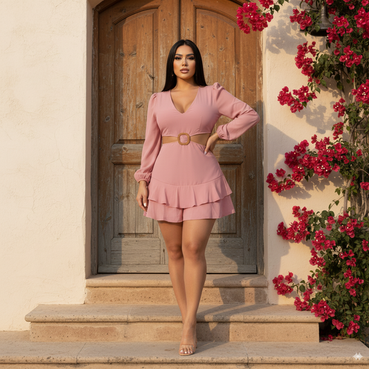 Enterizo short con escote en V y detalle de hebilla