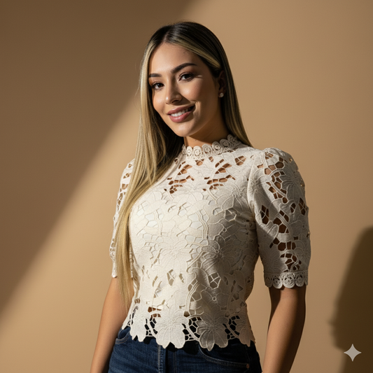 Blusa elegante de encaje para mujer con manga corta