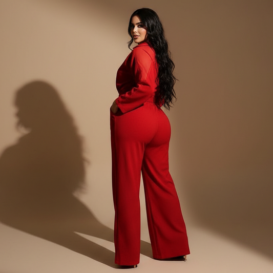 Enterizo palazzo para mujer con camisa manga larga y cinturón elegante