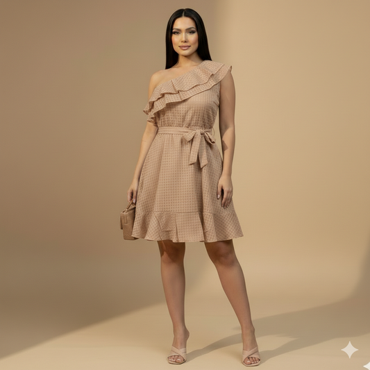 Vestido de Un Solo Hombro con Volantes y Cinturón