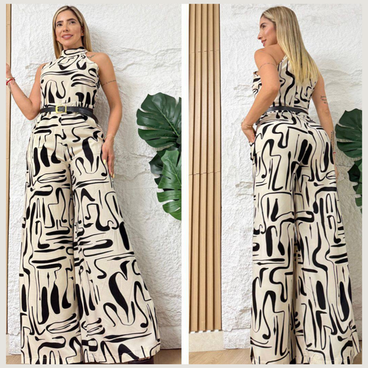 Enterizo largo estampado con cuello alto y pantalón amplio