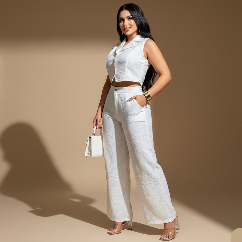 Conjunto de dos piezas con diseño estructurado y estética contemporánea.