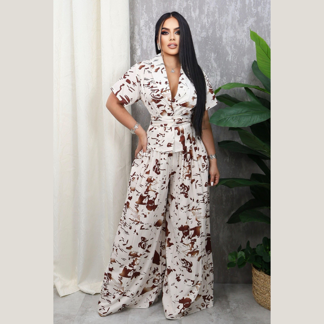 Conjunto plisado para mujer de dos piezas compuesto por blusa multiuso y pantalón tiro alto con resorte en la cintura para mayor comodidad. La blusa versátil permite diferentes estilos de uso y el pantalón de corte fluido estiliza la silueta.