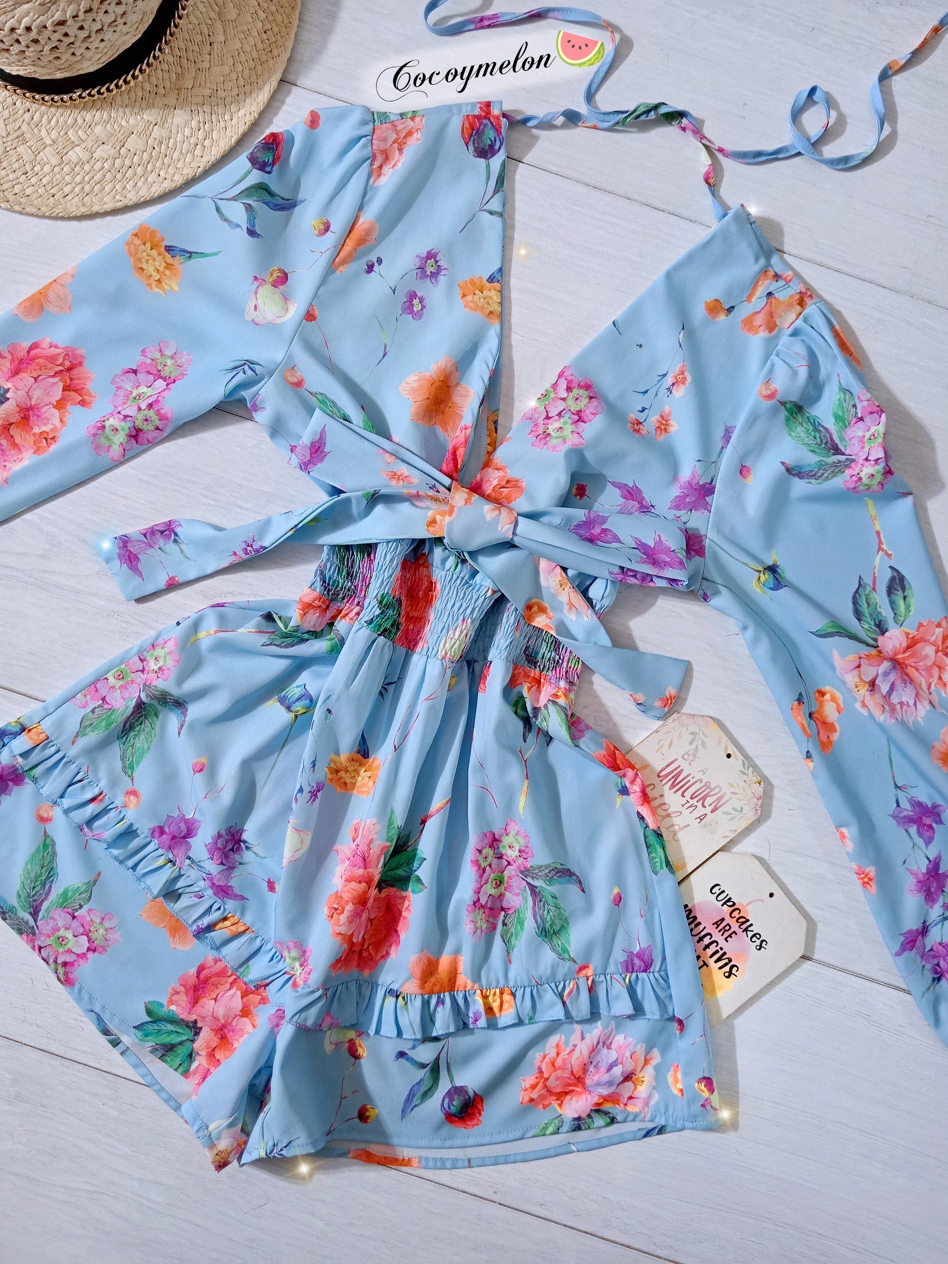 ✨ Atrévete a lucir fresca y radiante con este hermoso enterizo floral, diseñado para quienes aman la comodidad sin perder el estilo. Su estampado vibrante de flores sobre un fondo azul pastel lo convierte en la opción perfecta para días soleados, salidas casuales o vacaciones inolvidables.