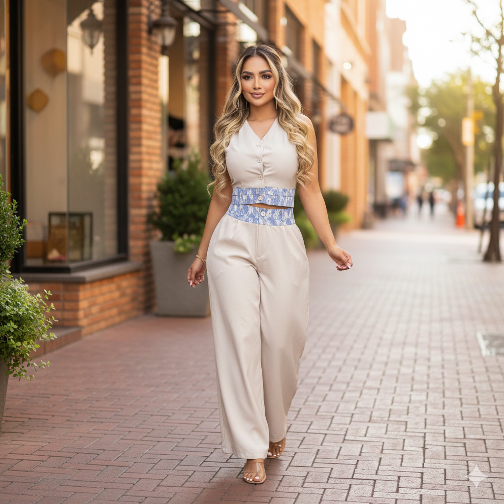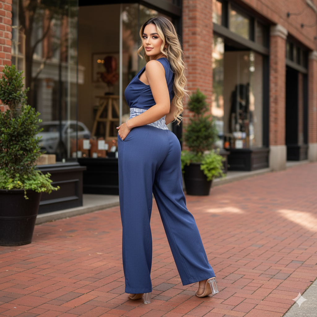 Luce sofisticada y cómoda con este enterizo palazzo diseñado para destacar en cualquier ocasión. Cuenta con escote halter elegante y un cinturón bordado que realza la cintura, combinado con pantalón ancho para máxima libertad de movimiento. Ideal para eventos especiales, reuniones o salidas donde quieras marcar tendencia.