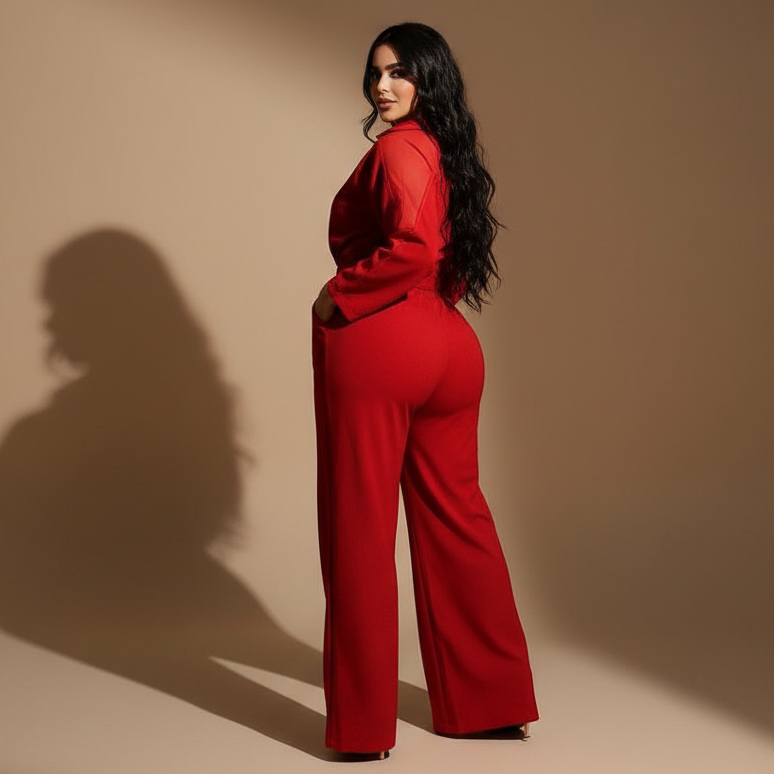 Luce sofisticada y cómoda con este enterizo palazzo ideal para reuniones, eventos especiales o salidas casuales. Diseñado con camisa manga larga y botones frontales, acompañado de un cinturón ajustable que define la cintura y un pantalón ancho que estiliza la figura. Perfecto para combinar con tacones y accesorios para un look moderno y chic.