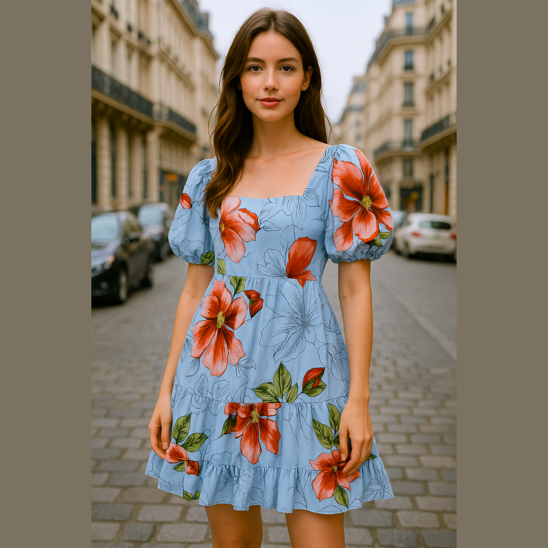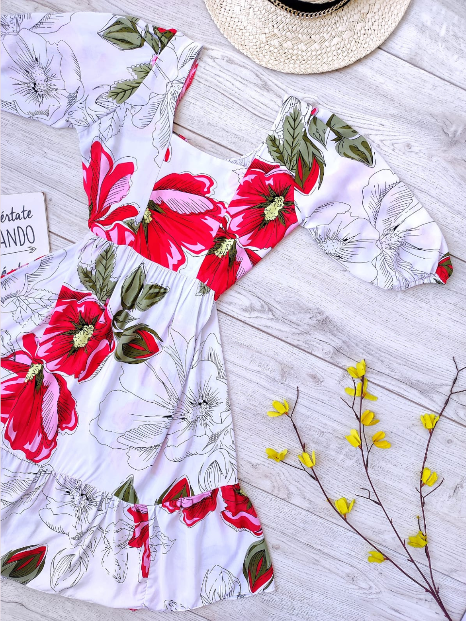 Vestido corto flores mangas