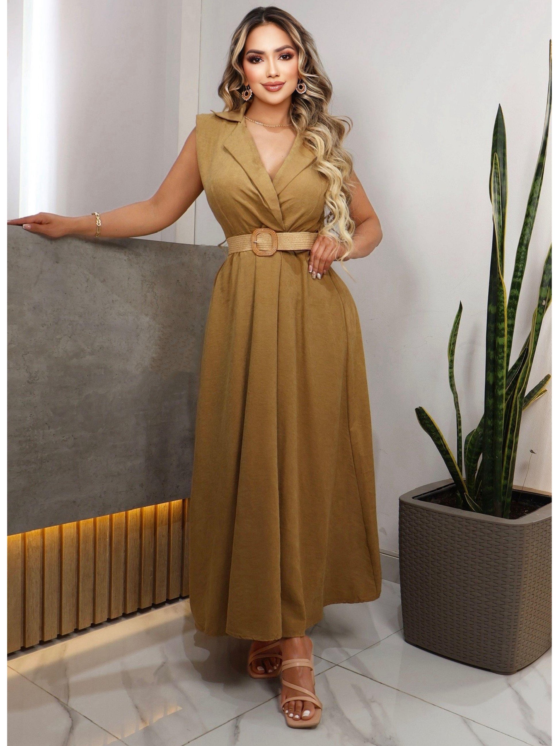 Este elegante vestido midi unicolor incluye un fajón para acentuar tu cintura y realzar tu figura. Perfecto para cualquier ocasión, su diseño midi te da un look sofisticado y suave al tacto te brinda comodidad. ¡Luce elegante y segura con este vestido con fajón!