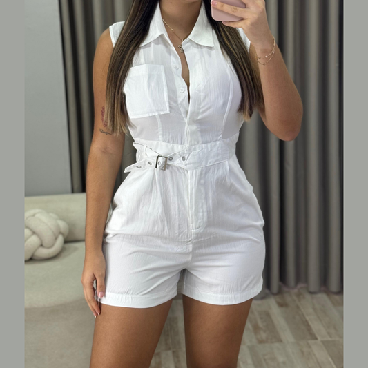 Enterizo corto con cinturón y bolsillo frontal