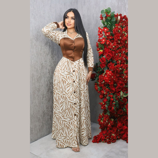 Vestido largo de mujer estampado con corset integrado manga larga