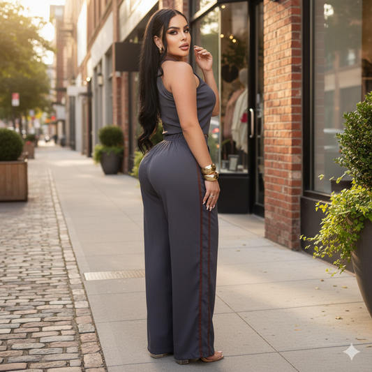Conjunto de Mujer Pantalón Palazzo y Chaleco con Cinturón